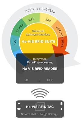 属于德资雅迪HARTING RFID 系统的Ha-VIS RFID, 大大地简化了RFID项目的职别。 Ha-VIS RFID 系统给阅读器在特定的位置上发挥关键功能。 由于该系统对数据、数据的高效率的预处理功能,阅读器可从整个公司的以太网的网络通讯减去荷载,并保证在高速应用系统比如邮件传输系统上能有卓越的表现。为了保证所有RFID询答机在实际上的充分整合,及阅读器可提供超高频UHF和高频HF技术作为其标准特点。这些标准特点由Ha-VIS RFID套件提供支持,这个套件能够提供高效的软件解决方案,RFID 套件解决方案的范围可从单个阅读器到整个公司的各个不同位置的阅读器。RFID 套件管理RFID 阅读装置和打印机的接口, 以及条形码阅读机、传感器、和控制器。 RFID 套件是建立于NET 平台上并以提供服务为主的体系结构,在此体系结构上,公司应用程序的任何数字可从已处理的资料中提取。