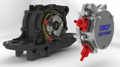 SKF提供用于牵引电机和齿轮箱应用的全套轴承和轴承单元,包括圆柱和圆锥滚子轴承、深沟球、角接触和四点接触球轴承。为了防止电流通过轴承,影响轴承性能,甚至严重损坏轴承,SKF应用电绝缘INSOCOAT和混合陶瓷轴承。INSOCOAT轴承通过在轴承外径应用特殊涂层,起到电绝缘作用。混合陶瓷轴承的绝缘性能则是通过采用陶瓷滚动体,防止电流穿过内圈滚动接触表面。牵引电机轴承单元是预润滑设计,便于转子系统安装,且可以装配速度传感器和温度传感器。