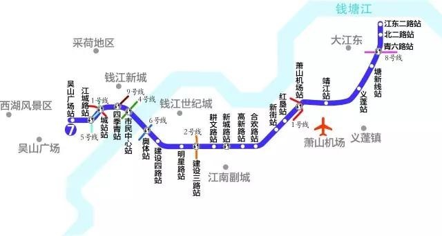 起于吴山广场站,终于江东二路站。2016年12月21日,杭州地铁三期规划获批。今年,地铁7号线如期开展建设,其中规划有萧山机场站。