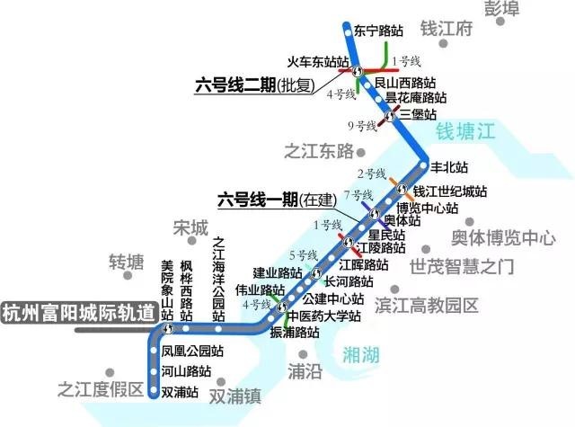 具体站点:吴山广场站、江城路站、城站站、四季青站、市民中心站、奥体站、建设四路站、明星路站、建设三路站、耕文路站、新城路站、高新路站、合欢路站、新街站、红垦站、萧山机场站、靖江站、义蓬站、塘新线站、青六路站、北二路站、江东二路站。