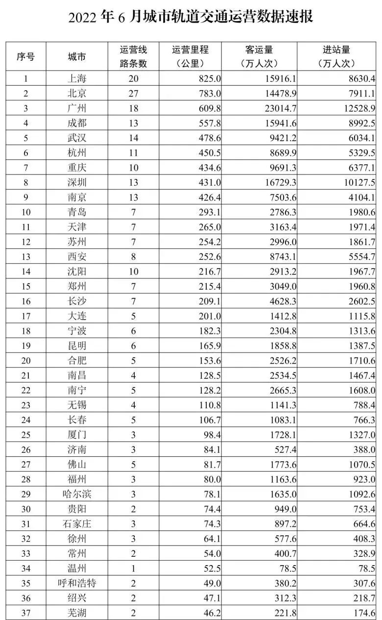 我国城市轨道交通建设进程持续加快,预计今年全国(不含港澳台,下同)城市轨道交通线路里程可能将突破1万公里。中国城市轨道交通协会1日发布消息称,截至2022年6月30日,中国内地累计有51个城市投运城轨交通线路9573.65公里。今年上半年新增南平市1个城轨交通运营城市。在稳住经济大盘,适度超前建设基础设施的政策背景下,一些中心城市陆续完成当期城市轨道交通规划建设,启动新一轮规划的编制和报批,预计未来将形成新一轮城市轨交建设的热潮。