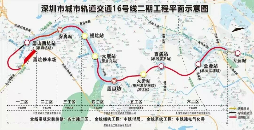 记者从深圳地铁16号线二期工程项目承建方中国铁建了解到,该项目全线长9.54公里,共设8座车站,新建1座停车场。该项目是打造深圳“东进战略”交通体系,构建粤港澳大湾区“一小时交通圈”的重点线路。