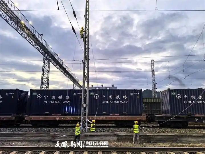 10月12日清晨,瓮马铁路北延伸线接入川黔线阁老坝车站施工现场,随着架空地线最后一个鞍子倒替完成,该项目首个接触网停电施工顺利收官,为阁老坝站改接触网上部施工迈出关键一步。