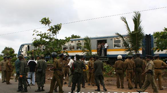 6月13日,在斯里兰卡首都科伦坡,由于在铁路边发现地雷,一列火车暂时停运。