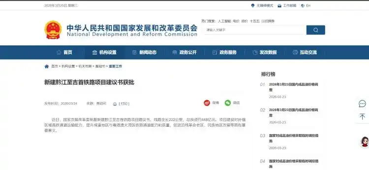 3月24日,国家发改委基础司官网发布消息《新建黔江至吉首铁路项目建议书获批》:近日,国家发展改革委批复新建黔江至吉首铁路项目建议 ...[查看]